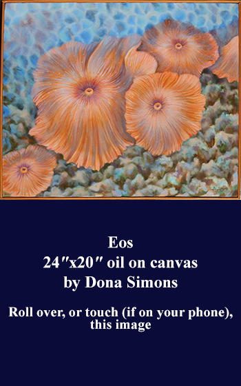 Speaking of otherworldly beings, this painting’s named after Eos, the Greek goddess of dawn, who’s sometimes depicted with wings. While the corals don't have wings (wouldn’t that look silly?), I’ve donned a pair in her honor that I got from a parade float at the last Mardi Gras. Add some light to your house with this painting and bring on the dawn!
